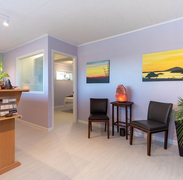 Centrally located in downtown Parksville on historic Memorial Avenue, our clinic features a warm and inviting waiting room for clients. We are so privileged to furnish our walls with Nicole Shaw‘s custom paintings, which are all for sale.